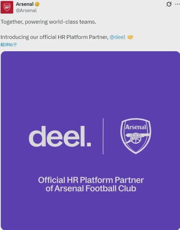 官方:阿森纳宣布和Deel建立长期合作伙伴关系,这家全球领先的薪资支付和人力资源平台将成为俱乐部官方人力资源平台合作伙伴。