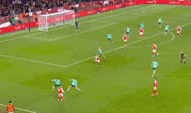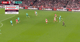第70分钟,萨卡角球击中远门柱后,弹在狼队门将约翰斯通后脑勺造成乌龙,阿森纳1-0领先狼队。