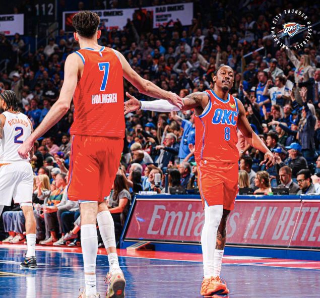 雷霆三巨头在场上还没有太多发力,比赛就已经失去悬念,三人都只打了三节比赛,合计轰下67分。这当中亚历山大打了26分钟,15投11中,三分4中3,拿到28分8助攻,正负值+43;霍姆格伦打了24分钟,13投9中,三分4中4,拿到24分8篮板3盖帽,正负值+33;杰伦-威廉姆斯打了22分钟,8中5,拿到15分5篮板5助攻。