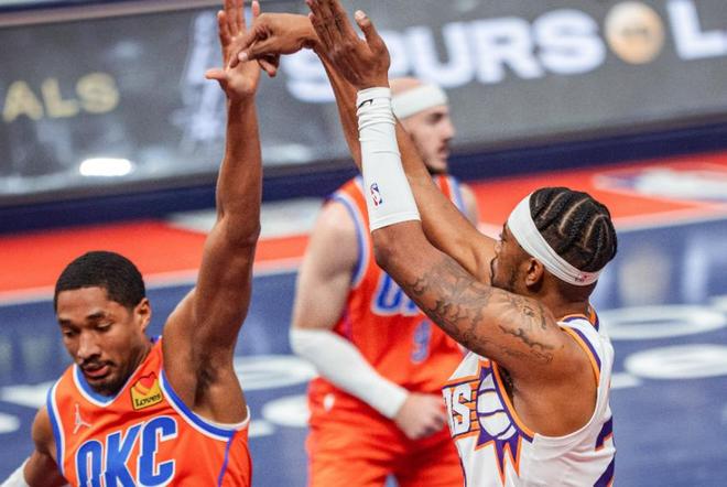 今夏拆散三巨头的太阳,虽然打出了远超预期的表现,但是即战力方面无法和雷霆相提并论,在赛季首回合和雷霆的对决中,以4分的劣势兵败俄克拉荷马城,遭遇到了常规赛面对雷霆的七连败,如今再度相遇,太阳核心布克因为腹股沟的伤势无法出战,这也让外界一边倒看好雷霆延续强势表现的前景。